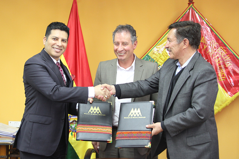Firma del convenio marco entre la Corporación Minera de Bolivia, el Ministerio de Minería y Metalurgia, y la Cámara Minera del Perú.